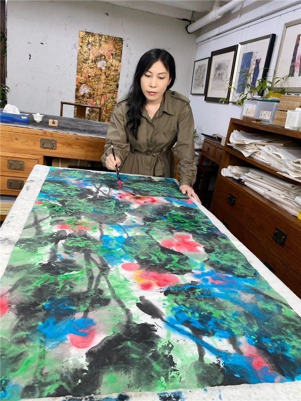 一位画家的绘画艺术风格能受两种文化体系的加持,说明她从事绘画艺术,不但有超凡脱俗的技法磨练,也有卓越非凡的文化见地!由是她的绘画作品看起来与众不同,自立面目。恰是丹青艺术当随时代的文化建树。